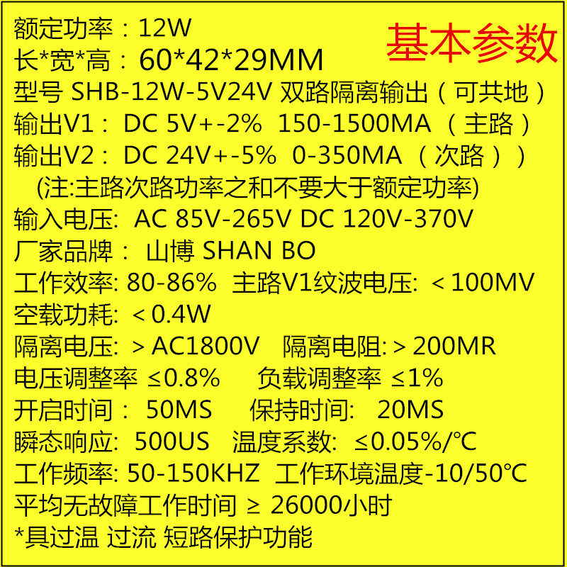 5V24V12W dual-way isolation output ACDC power module input AC220V Sandbo 30524