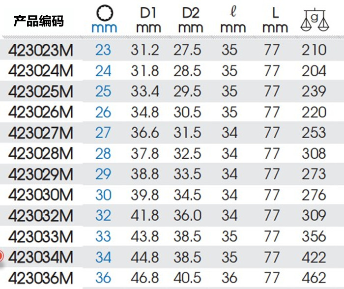 423008M 423008M (8mm) 423009M (9mm) 423010M (10mm) 423011M (11mm) 423010