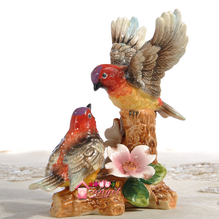 Fang Ya Biyi Double Flying Red-headed Tit Bird Ceramic Decoration Gift Home Jewelry Moving Entrance TV Cabinet Wedding Jewelry