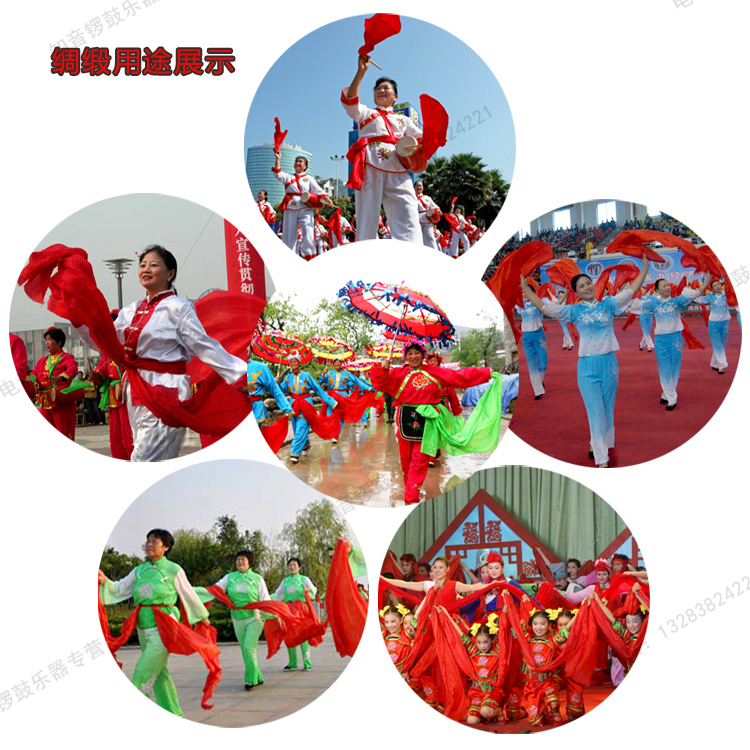 Lion dance red silk waist drum red ribbon square towel satin strip Yangge red silk 3M meters long and 25CM wide musical instrument
