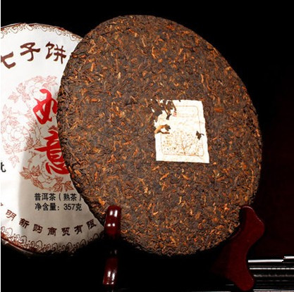 Ripe Pu'er Tea Xinyi No Ruyi Yunnan Pu'er Tea Cooked Tea Qizi Cake Tea 357g