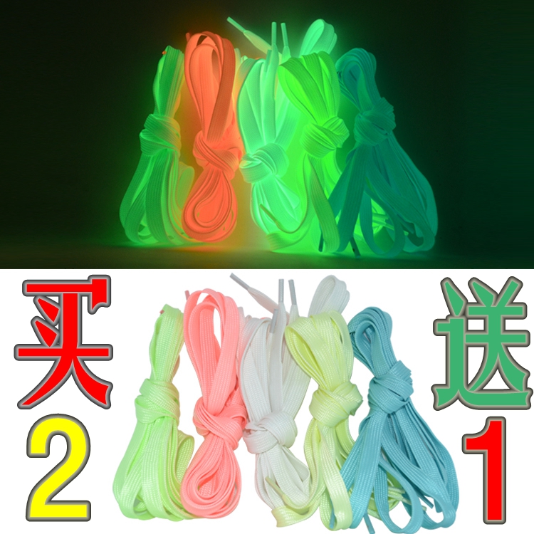 Fluorescent shoelaces Luminous colorful wild luminous men and women white children's students gradient color reflective shoes rope flat canvas