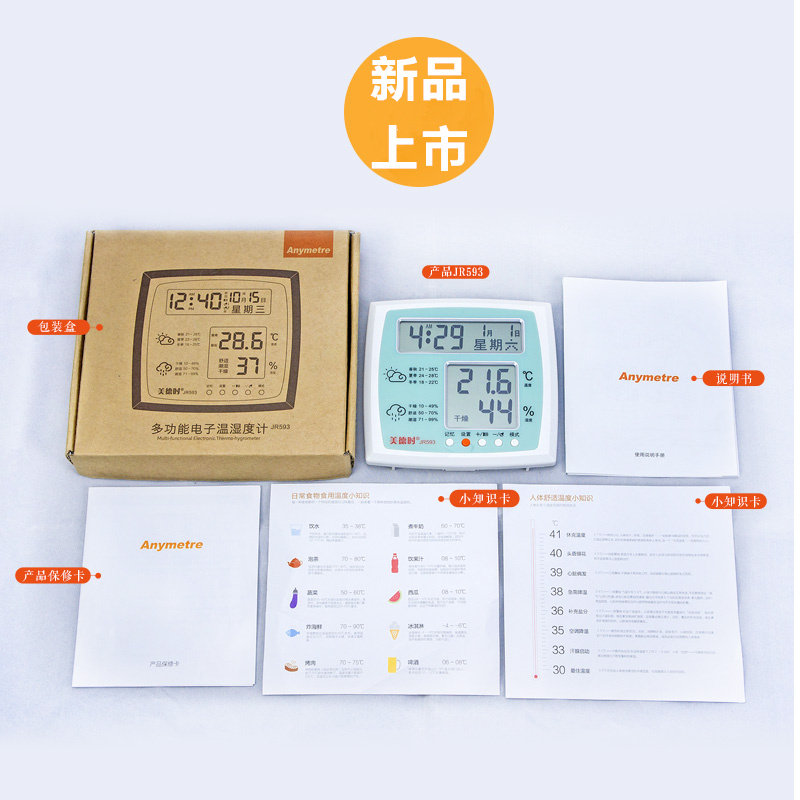 High-precision electronic humitometer JR593 Domestic indoor precision thermometer large screen at the time of virtue