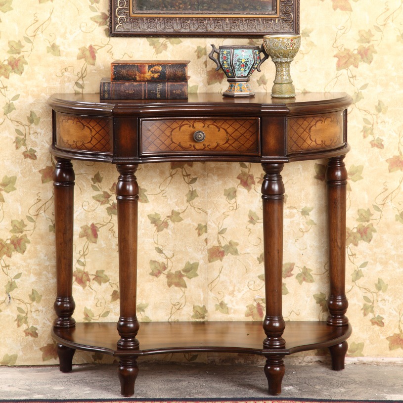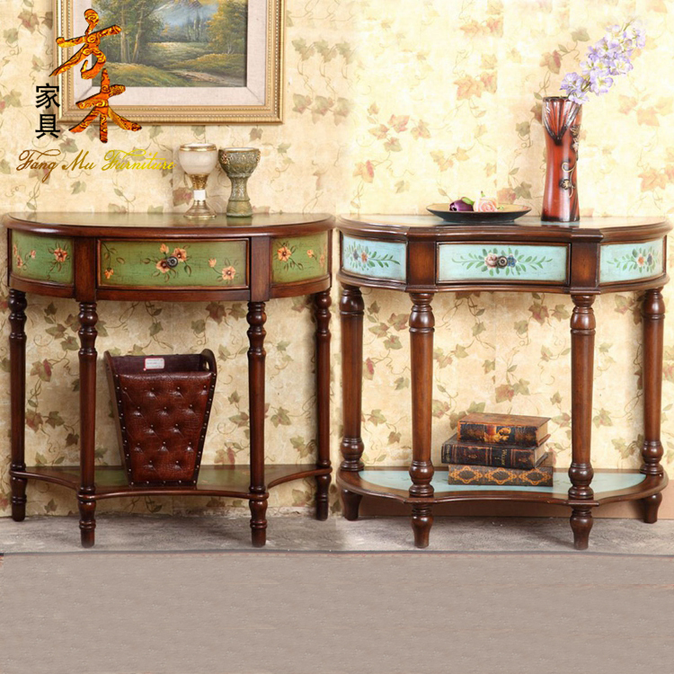 American Xuanguantai Corridor Edge Desk Several Table Makeup Desk end View Desk Hand Painted Semi-circle Table 0 86 m Solid wood