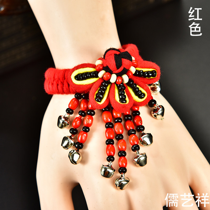 Wholesale characteristic Yunnan national wind bells hand chisel Dragon Boat Festival women's braided hand rope dance jewelry handmade fabric