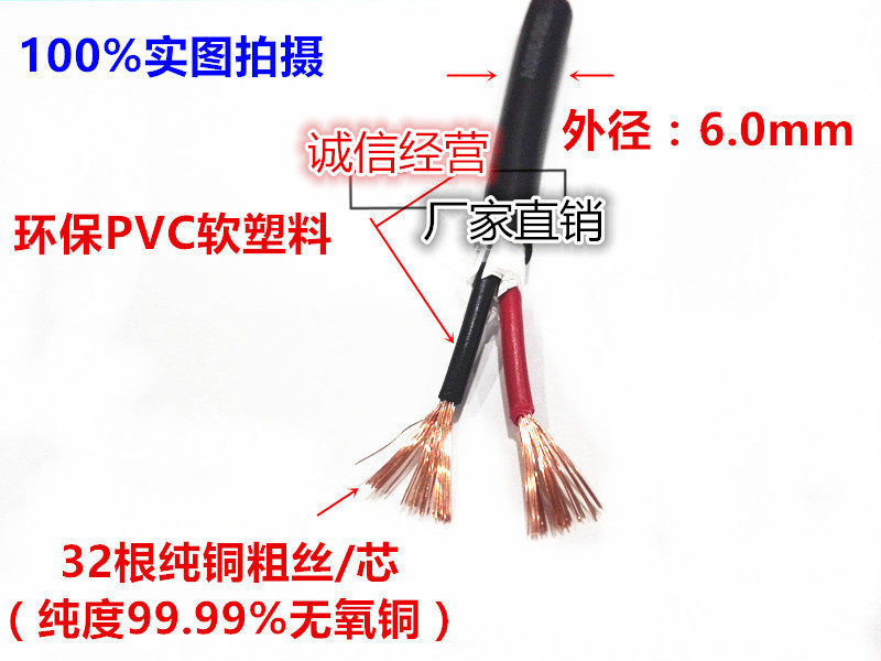 Pure copper RVV2 * 1 0 squared copper core cable wire two-core soft sheath wire power cord signal monitoring line