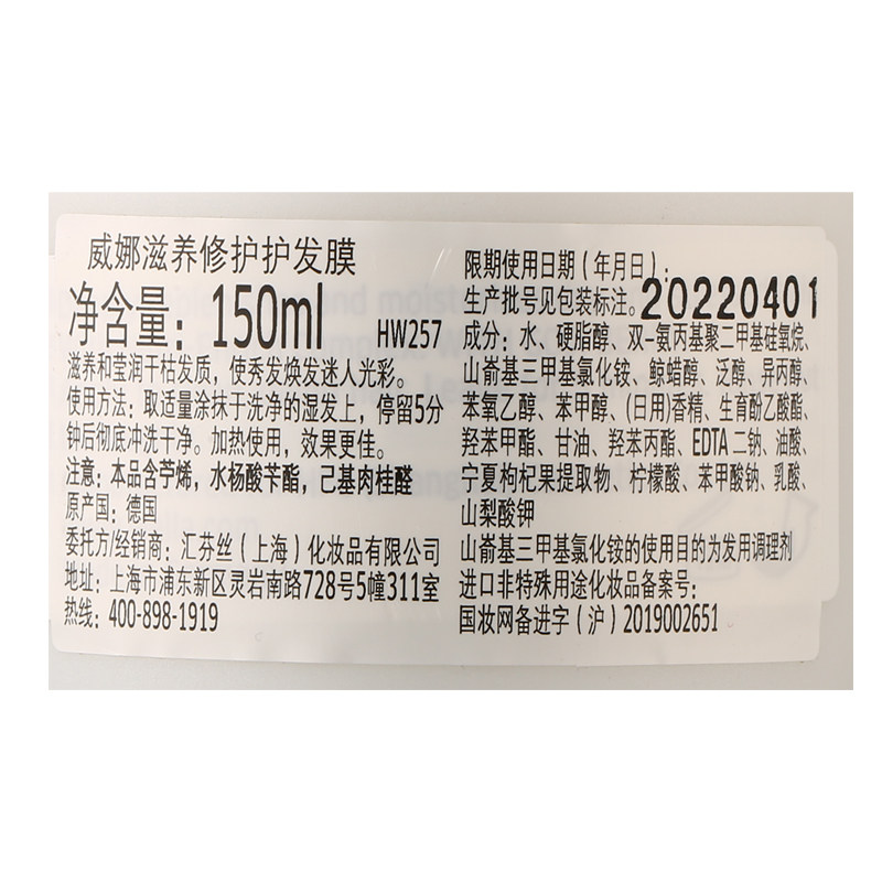 wella Germany Weina nourishing hair care hair film 500ml Care inverted film oiled cream repairing damaged dry