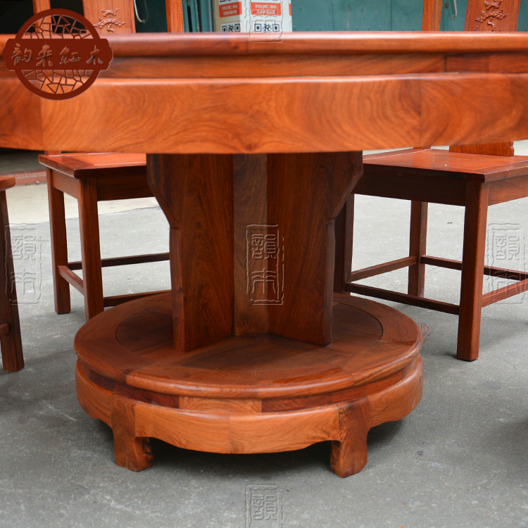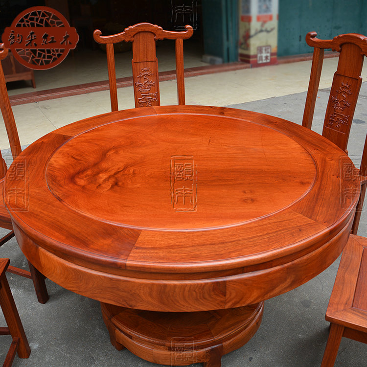 Myanmar Flower Pear Round Table Full Single Plate 1 m 2 Meals Table 7 Pieces Red Wood Solid Wood Minimalist Composition Furniture Solid Pat