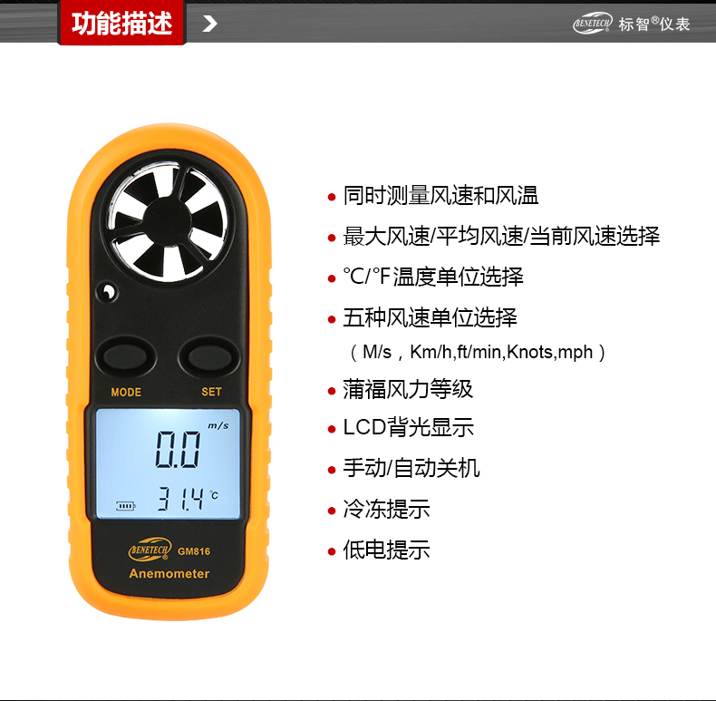 Biaozhi anemometer GM816 portable anemometer anemometer handheld high-precision wind meter