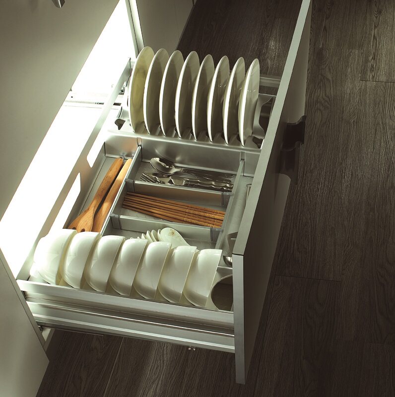 Space aluminum alloy holistic cabinet pull kitchen drawer type double bowl dish frame