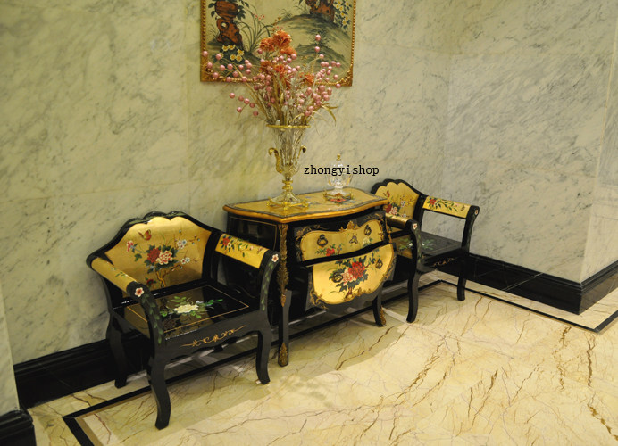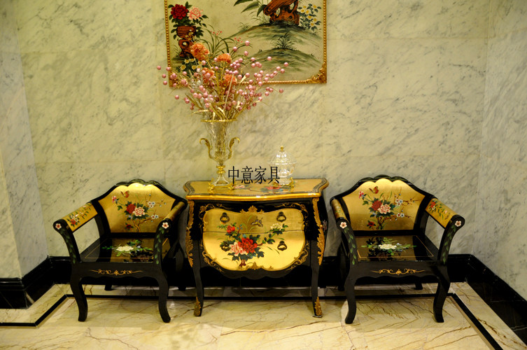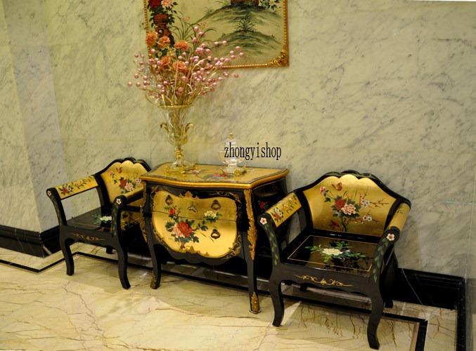New Chinese classical gold foil hand drawn casual suit two chairs classical Chinese furniture casual chair coffee chair single sofa
