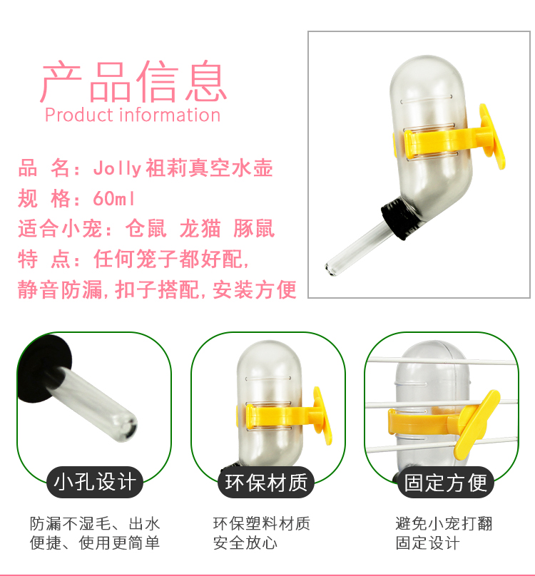 Jolly Vacuum water bottle Hamster Water bottle Kettle Drinking water fountain Chinchilla drinking water fountain Rabbit Ball water bottle