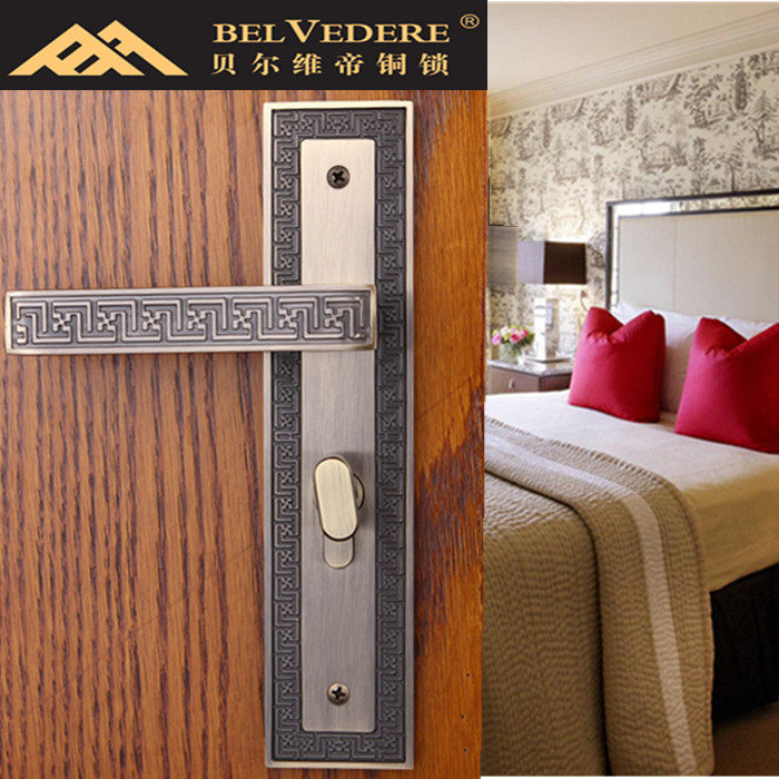 Shuangshan Hardware Belvedere room door lock copper lock Chinese mute universal solid wood door handle lock tongue
