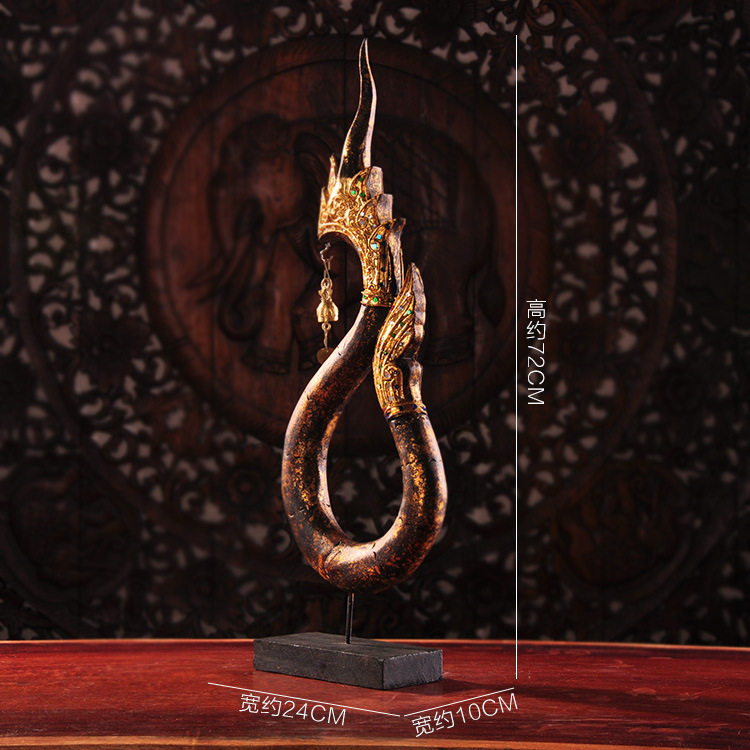 Thai handicraft home decoration wood carving retro abstract peacock copper bell decoration living room porch decoration