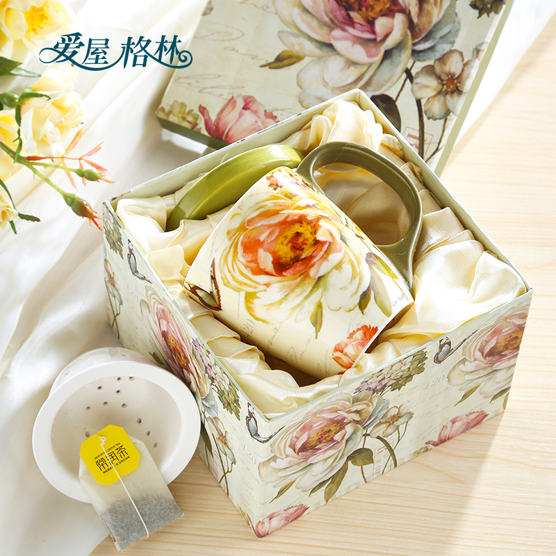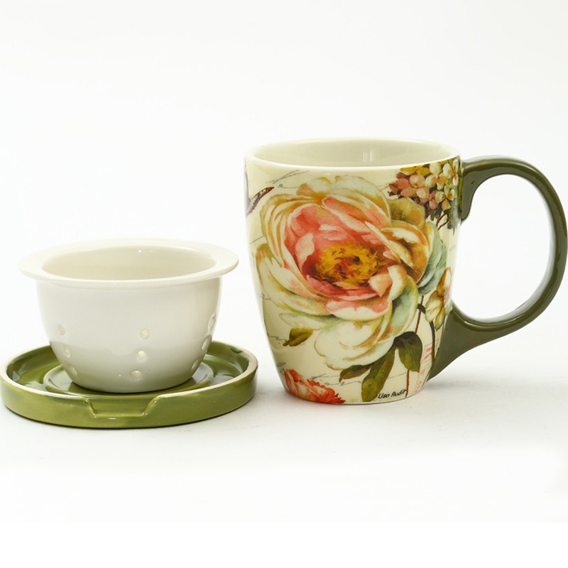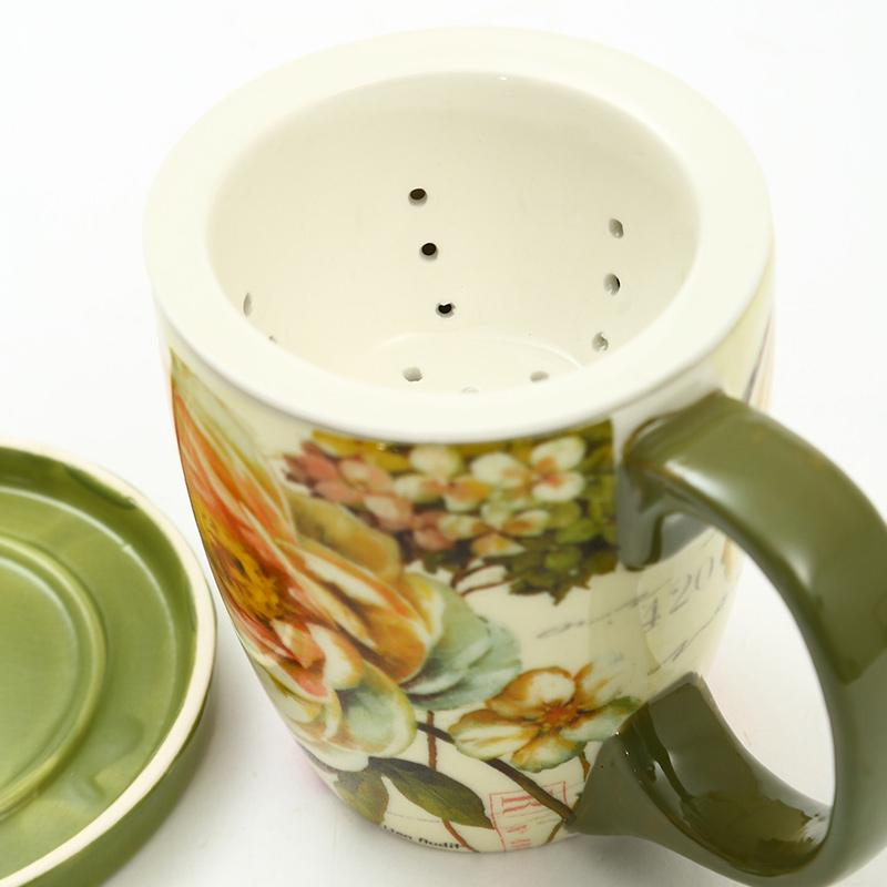 Love Uk Green Ceramic Mark Cup Flower Tea Cup Tea Water Separation Bubble Tea Cup Women's Office Home Water Cup Cup