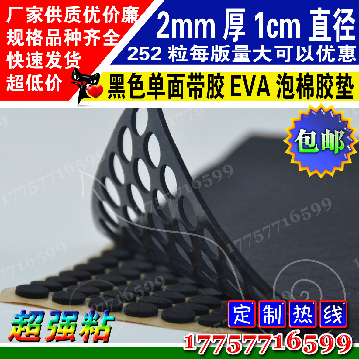 Strong adhesive black single face with rubber EVA foam sponge shockproof plastic cushion 2mm thick 1cm diameter home to protect round cushion