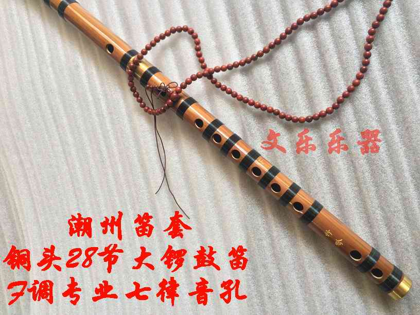 Chaozhou 28 Festival Gong Drum Flute flute single-inserted brass with two sides inlaid with copper cover two bamboo tide drama Chaozhou Wenle musical instrument