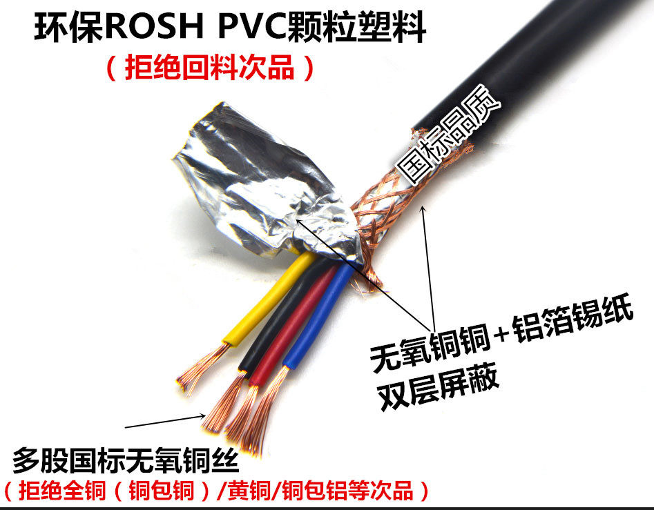 Pure copper RVVP4 * 0 5 squared four-core shielded wire signal anti-interference control power communication line