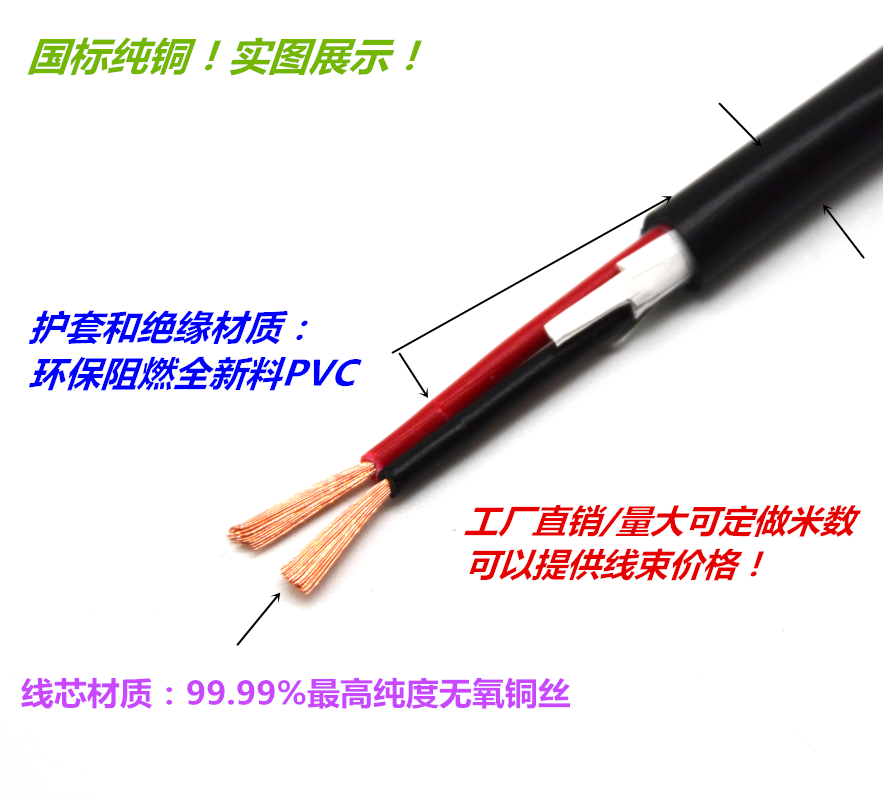 Direct marketing national standard pure copper RVV2 * 0 2 squared cable wire two-core RVV soft sheath wire power signal monitoring line