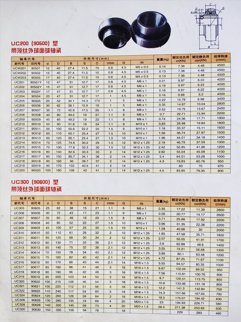 UC201 "Inner diameter 12-outer diameter 40" UC202 "Inner diameter 15-outer diameter 40" UC204 "Inner diameter 17-outer diameter 40" UC204 "Inner diameter 20-outer diameter 47"