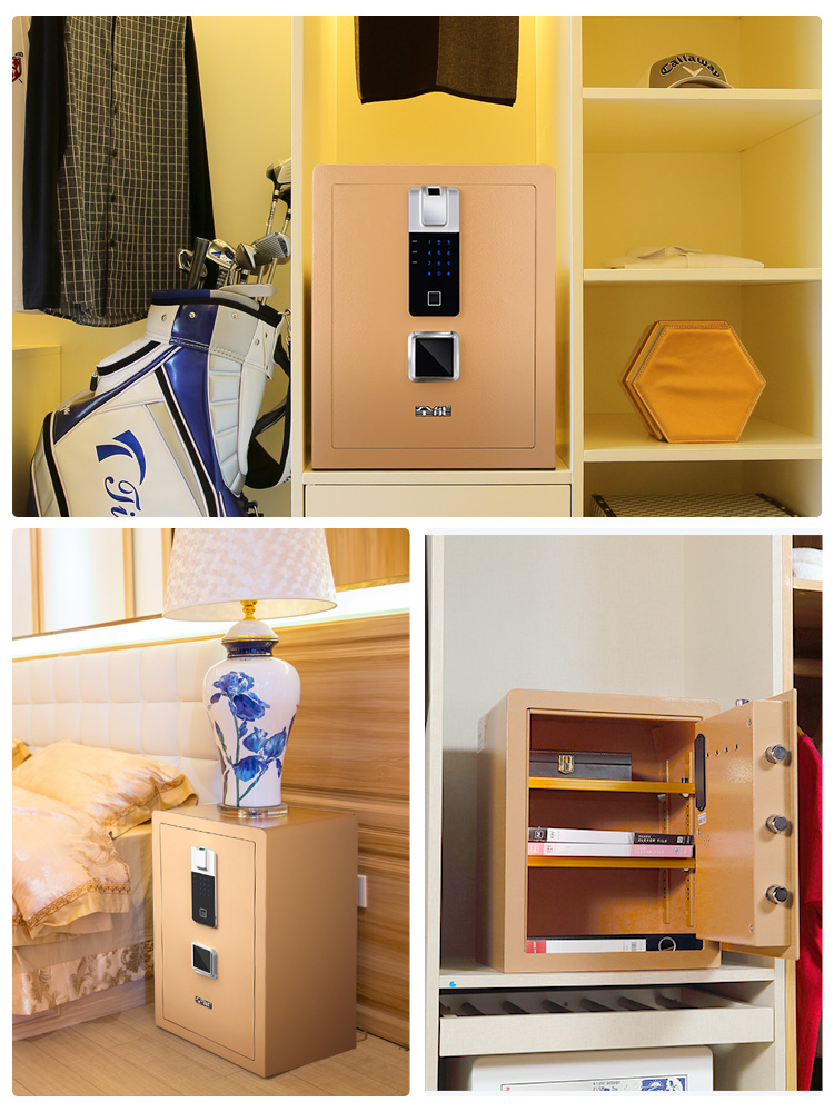 Versatile safe home small fingerprint password safe deposit box headboard invisible to wall electronic fingerprint burglar-proof key opening full steel three-layer large space RD45III safety-deposit box