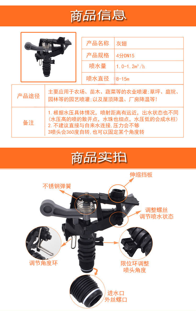 Apricot fluorescent yellow army green emerald green fluorescent green light green coffee dark brown camel flower color 4 points (DN15) gray wing controllable angle 6 points (DN20) gray wing controllable angle 4 minutes (DN15) green wing controllable angle 6 minutes (DN20) green wing inner filament 4 minutes (DN15) yellow wing controllable angle 6 points (DN20) yellow wing controllable angle 4 points (DN15) green wing uncontrollable 6 points (DN20) silver spot nozzle 4 points (DN15) alloy uncontrollable 6 points (DN20) alloy uncontrollable 4 points (DN15) alloy controllable 6 points (DN20) zinc alloy roughly 1 inch (DN25). Alloy uncontrollable 1 inch (DN25) Alloy controllable 1 inch (DN25) Inner tooth double nozzle 1 inch (DN25) Inner tooth four nozzle 4 points (DN15) Green plastic insert 4 points Inner teeth 6 points Outer teeth Yellow plastic insert 4 points (DN15) Stainless steel triangle bracket 6 points (DN20) Outer tooth single nozzle controllable angle 6 points (DN20) Outer tooth double nozzle uncontrollable 6 points (DN20) Outer tooth double nozzle orange model