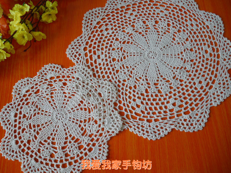I love my home Pure handmade crochet hook flower cotton Lace hollow round table mat 2545 beige white