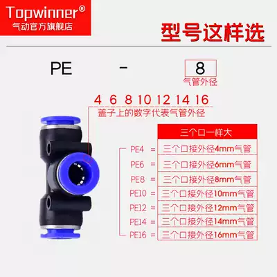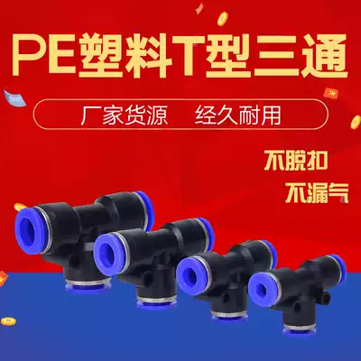 Plastic quickly tee PE4 6 8 10 12 14 16T type tee quick connector mechanical pneumatic components