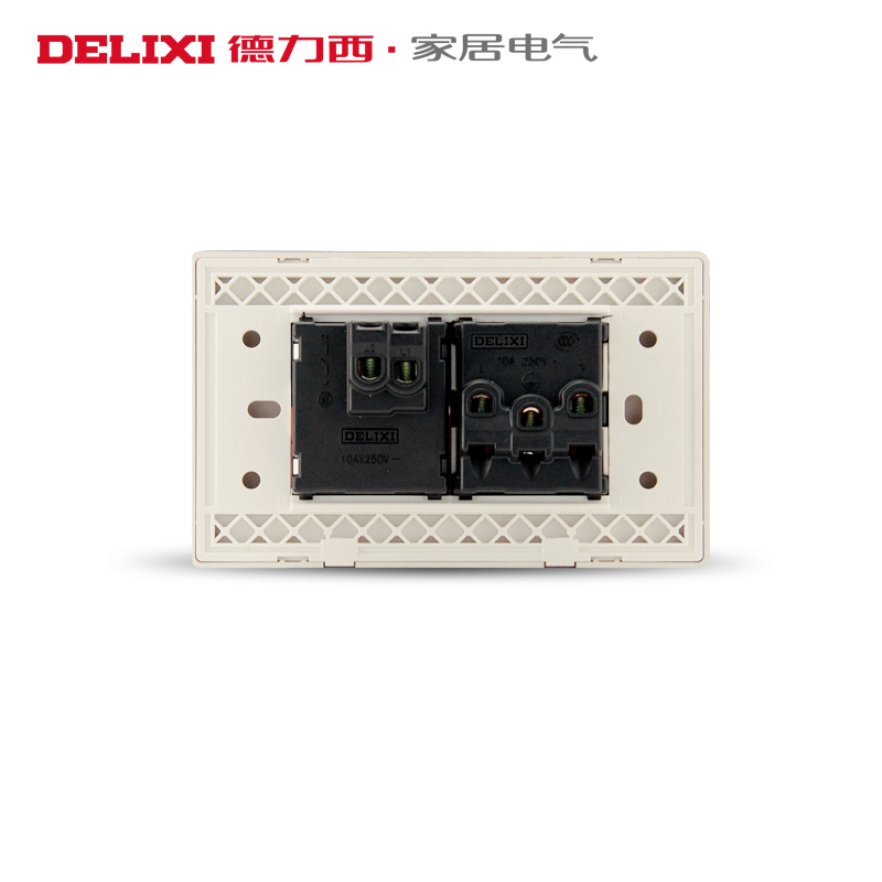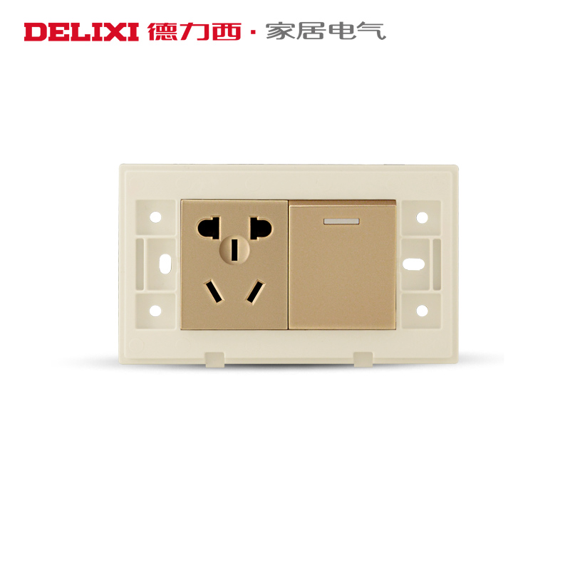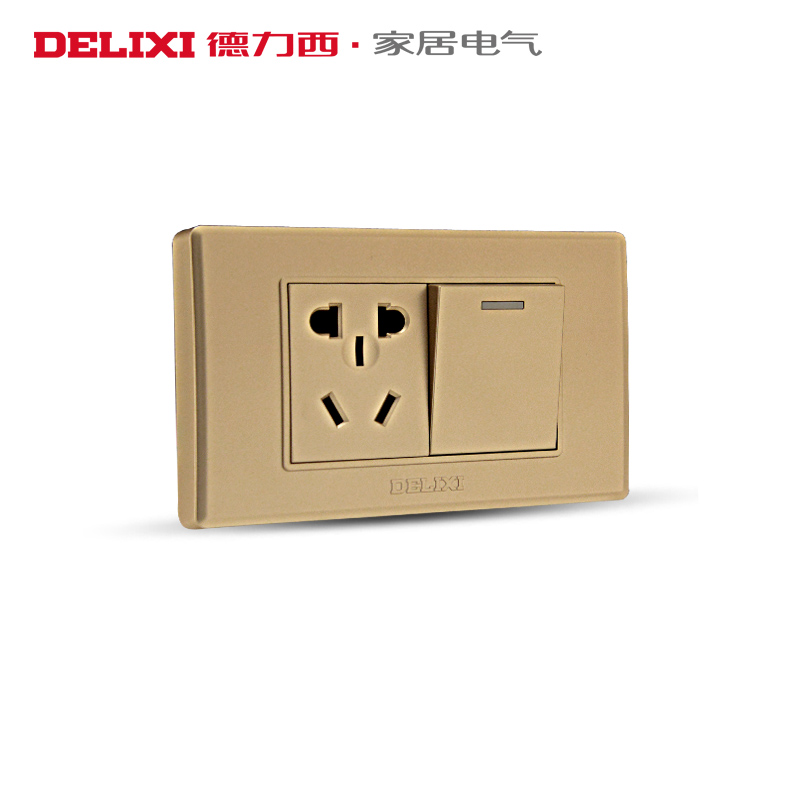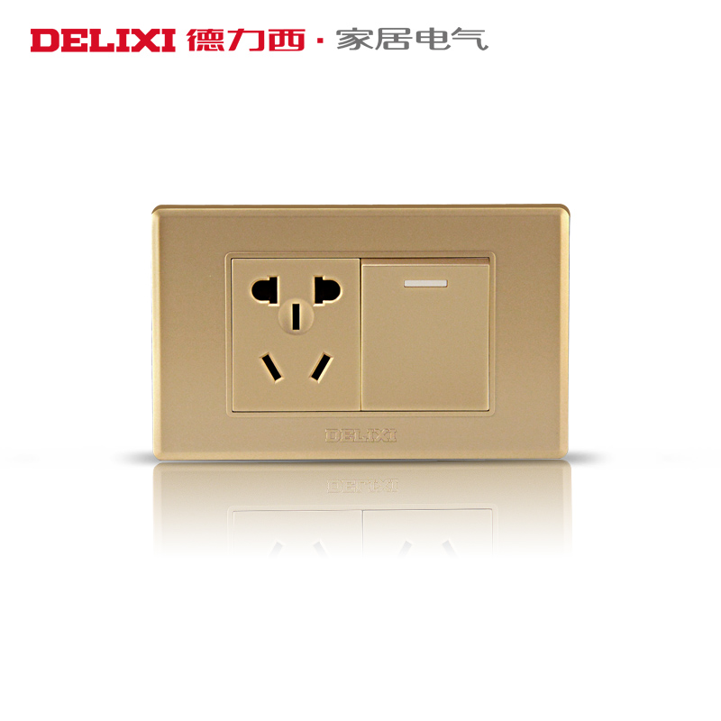 Delixi 118 type switch socket champagne gold one open single control five holes one open double cut five holes 1 open 1 plug