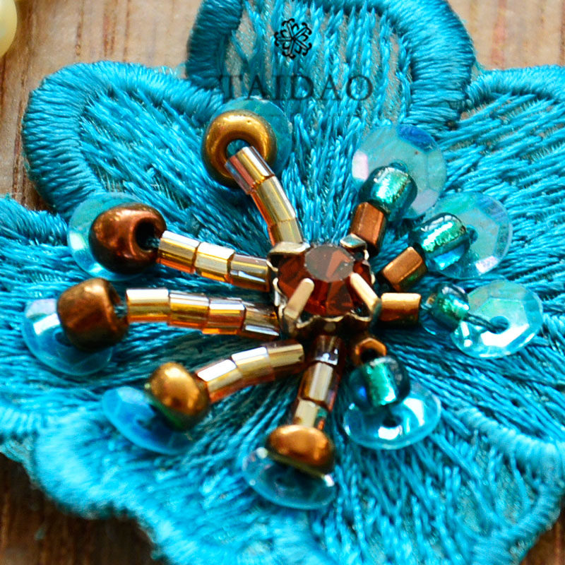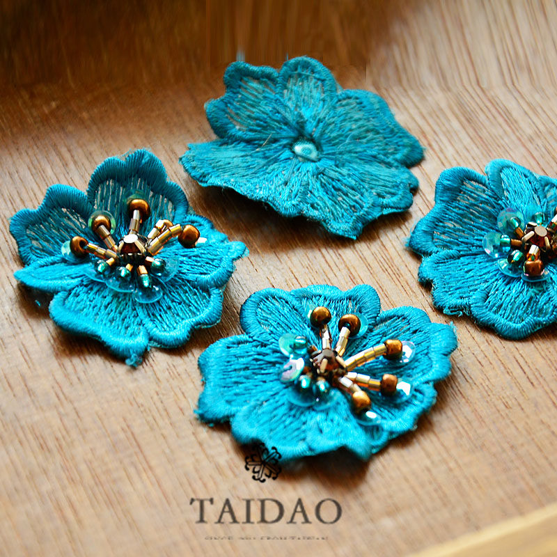 Taiwan DIY handmade accessories Beaded Lace flower appliqué 190 sequins beaded cloth patch flowers
