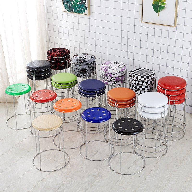 Orange steel stool (starting with four) blue steel stool (starting with four) green steel stool (starting with four) black legs orange surface 45 high (starting with four) black leg blue surface 45 (starting with four)