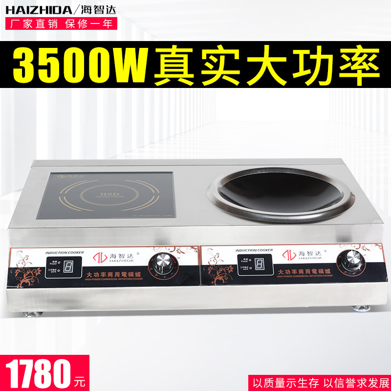 Hizhida Commercial induction cooktop 3500w Double head combined furnace 3 5KW High power induction cooktop One-flat-fired oven