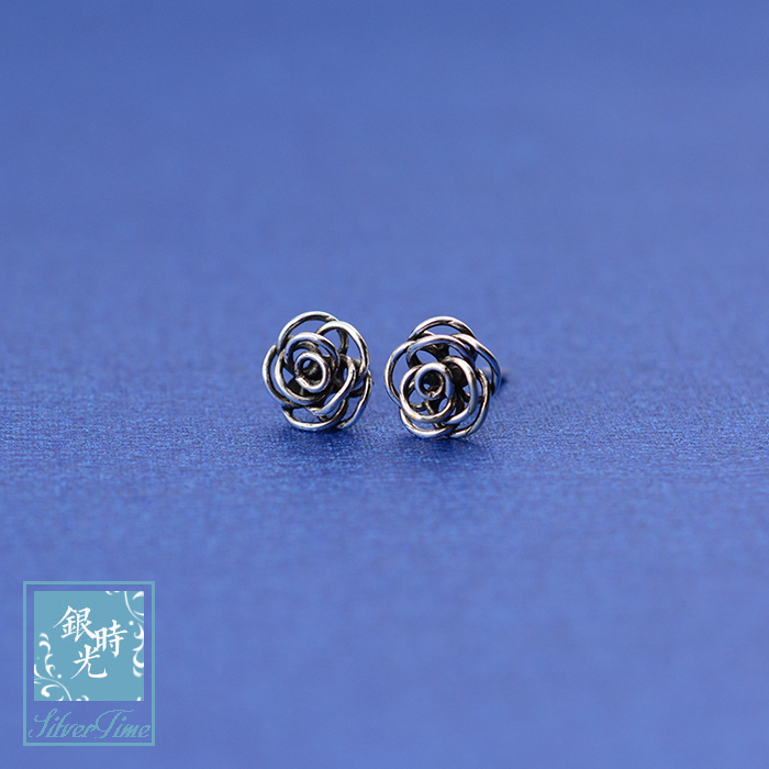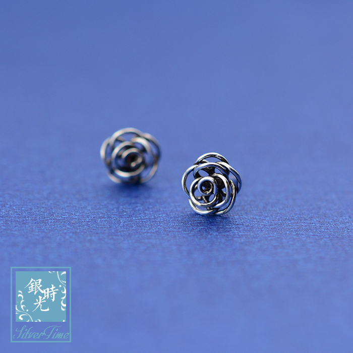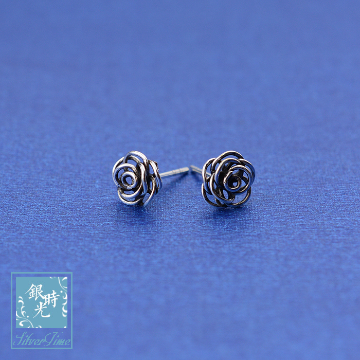 Silver Time S925 Pure Silver Ear Nail Tai Silver Retro Rose Flower Small Ear - ring National Wind Creative Ear