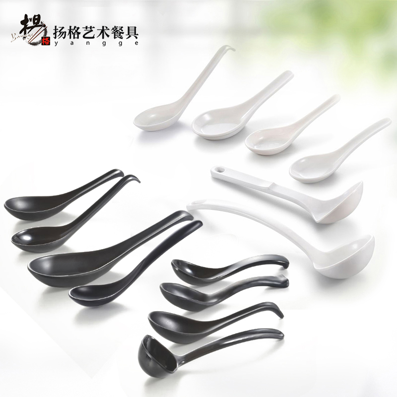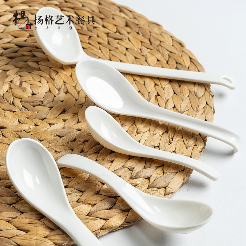 Yangg long handle soup spoon imitation porcelain cute short handle plastic small spoon dense amine Western meal porridge rice spoon Han style cutlery set