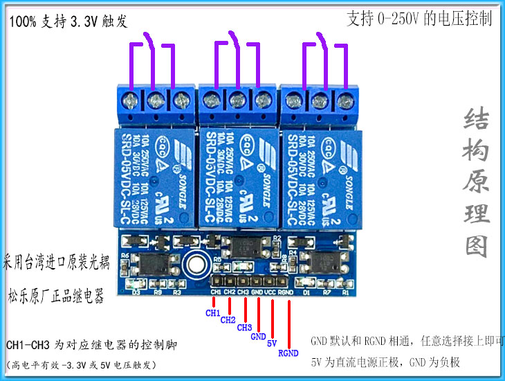 3-way relay module with optocoupler isolation fully compatible with 3 3V and 5v signal control high pressure