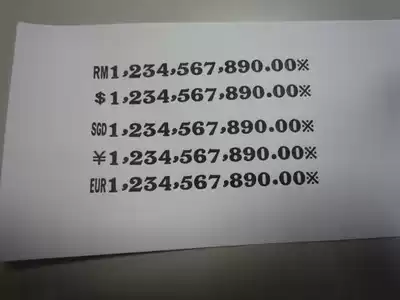 Malaysia version RM ¥ $ SGD EUR Hong Kong version HKD ¥ $ USD RMB Single black ink wheel*1 Single Red ink wheel*1