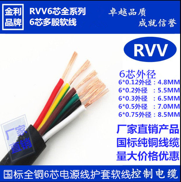 Dumping national standard pure copper RVV6 core * 0 5 squared soft jacket line multi-core power signal control line