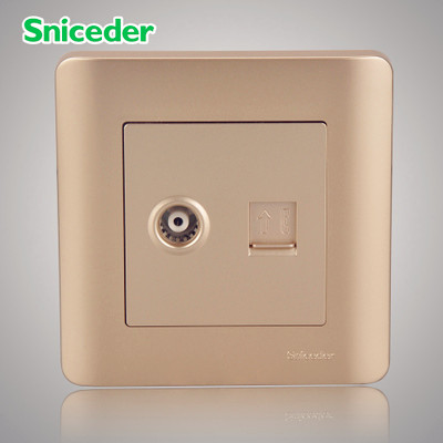 Schronde 86 type Champagne gold second phone TV socket holder cable solid talk TEL TV panel-Taobao