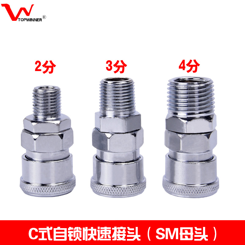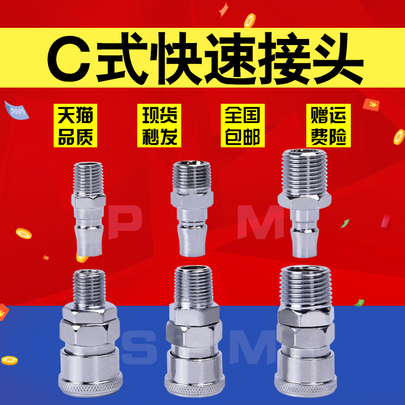 C-type quick-insertion quick pneumatic pipe joint mother head SM20 30 40 male head PM20 external thread 2 points 3 points 4