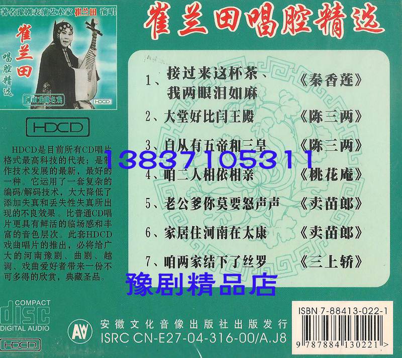 Yu Opera boutique monopoly:Yu Opera five famous Dan Cui Lan Tian Cui Pai classic repertoire singing album CD