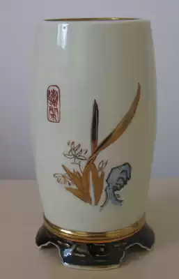Cizhou kiln flower glaze cultural room boutique 70 80 s gold pen holder Wen craft decoration calligraphy painting 70 s or 80 s