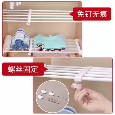 Wardrobe storage layered partition partition kitchen nail free rack integral cabinet retractable partition rack dormitory shelf