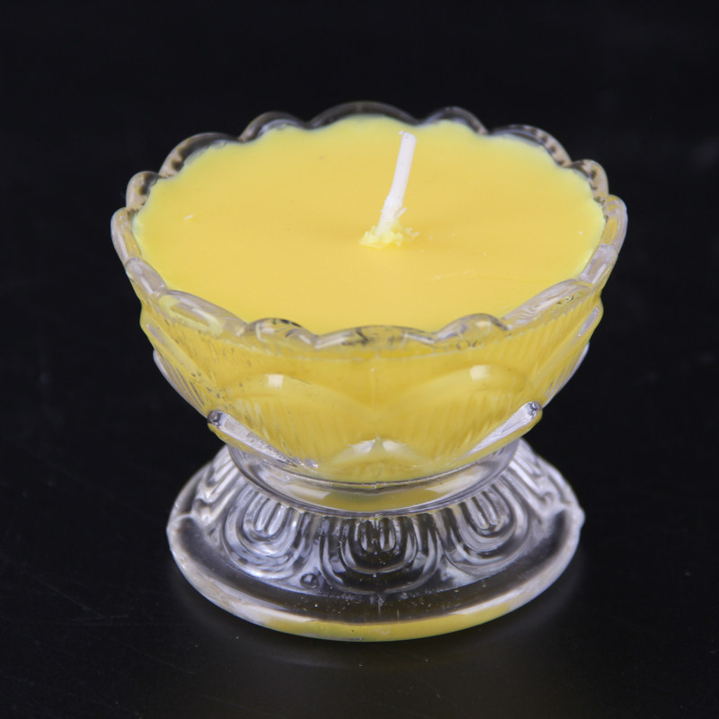 Manufacturers direct selling glass small high foot butter lamp lotus 8 hours ghee candle for 12 hours smoke smoke smoke fragrance