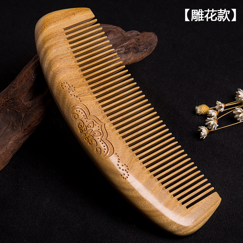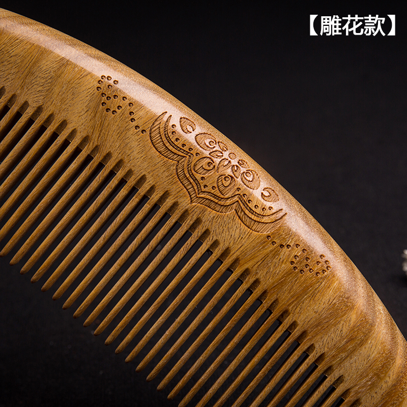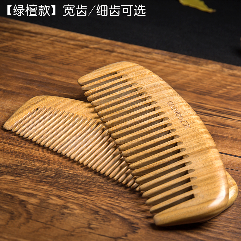 B wood green sandalwood comb Shunfa curly hair comb Wood comb Household sandalwood horn comb Hair dense tooth wide tooth comb