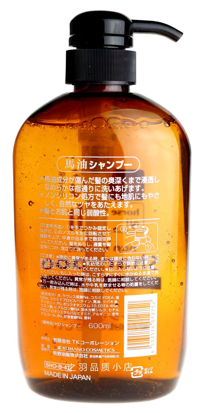Japan Bear Wild Grease No Silicon Natural Weak Acid Horse Oil Shampoo Shampoo 600ml
