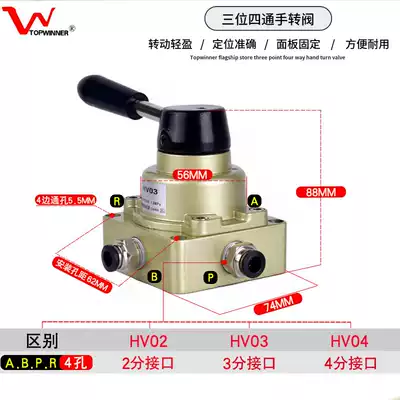 Pneumatic three-position four-way manual switch manual valve manual switch manual valve dynamic valve valve HV-02 03 04