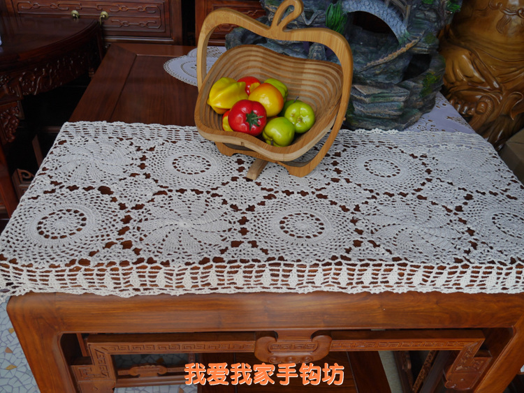 I love my home handmade crochet hook flower cotton lace hollow woven table flag multi-purpose cover cloth rectangle