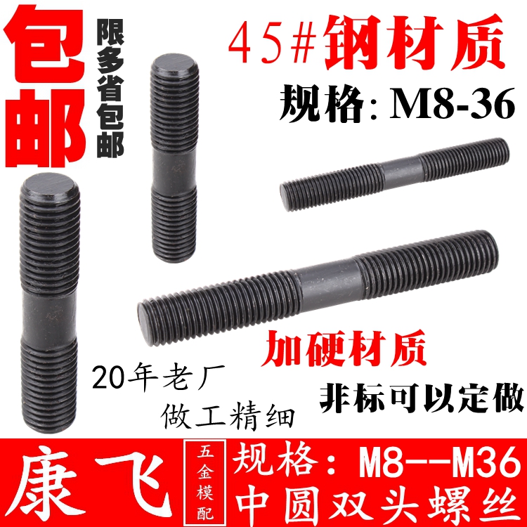 Kang Fei 45# steel medium round double head screw stud bolt screw screw rod pressure plate screw M10-36