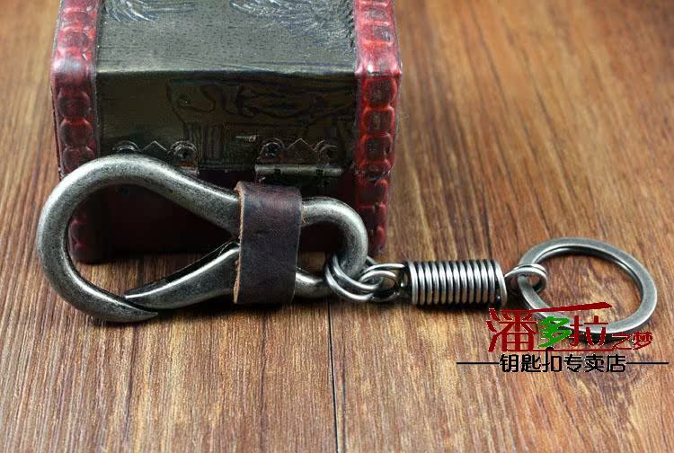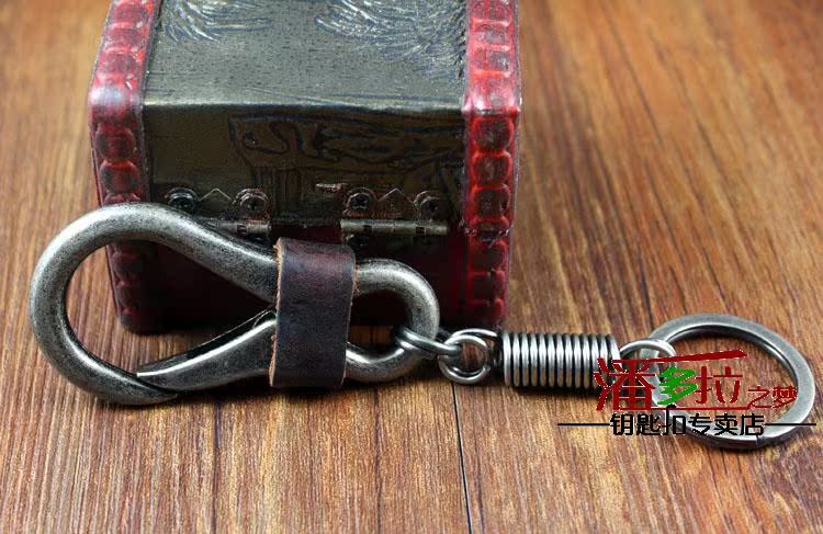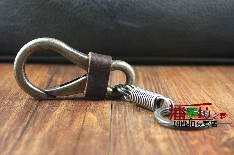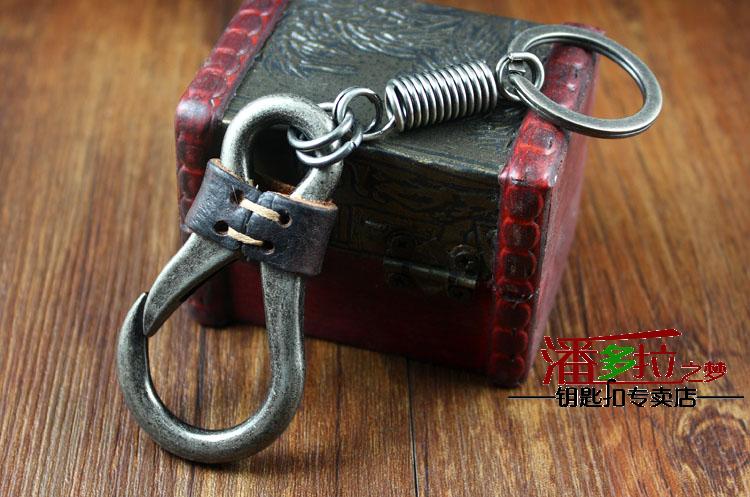 Upscale men's denim leather waist hanging hanging buckle retro classic large hook climbing buckle key button