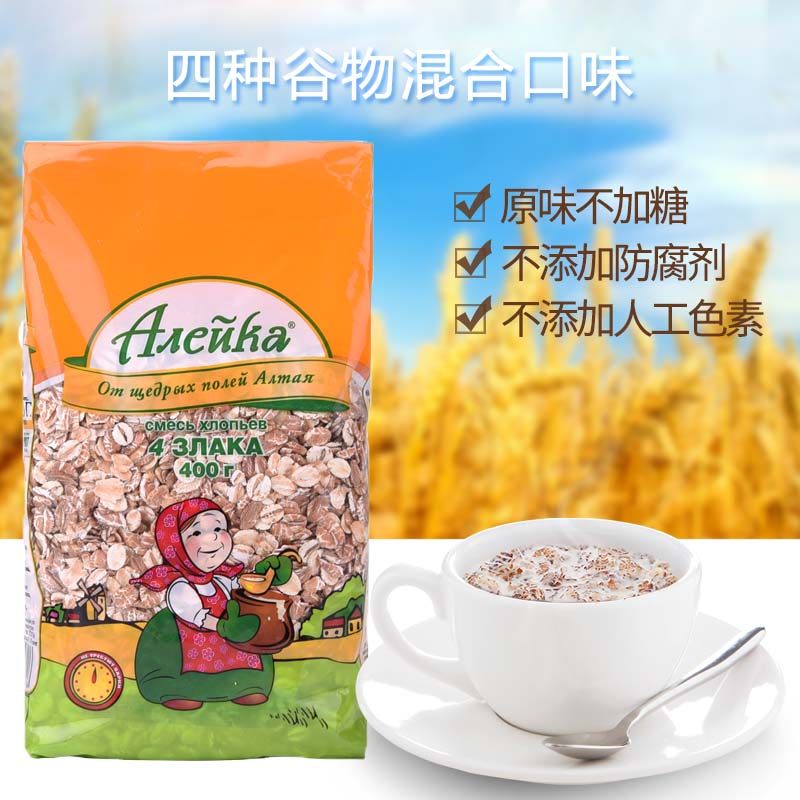 A packet of 400 grams of oats flavor a packet of 400 grams of flavor mixed with 400 grams of black wheat (2 packs) oat flavor (2 packs) mixed with four grains (2 packs) with black wheat